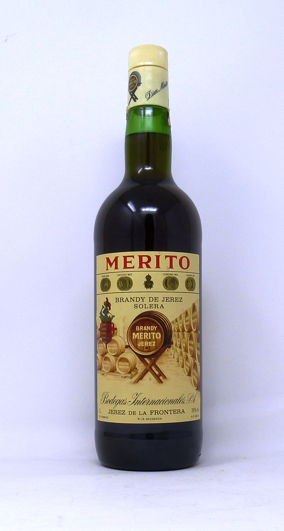 – BODEGAS INTERNACIONALES – PAIS: ESPANA – JEREZ – TIPO DE BEBIDA ESPIRITUOSA: BRANDY – BOTELLA FLAMENCA